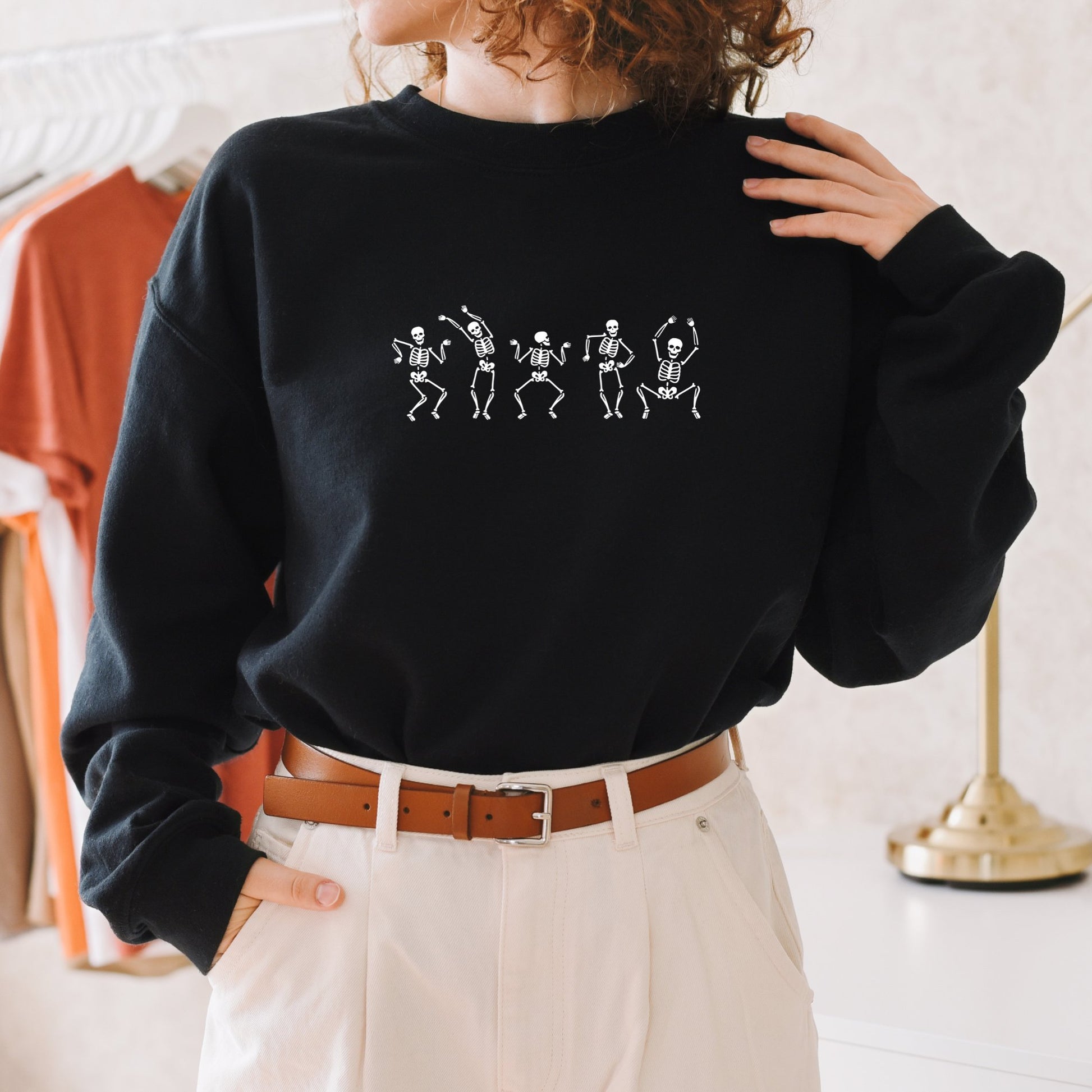 The Dancing Skeleton screen print transfer measures 9 inches by 3.6 inches and is printed in white ink.