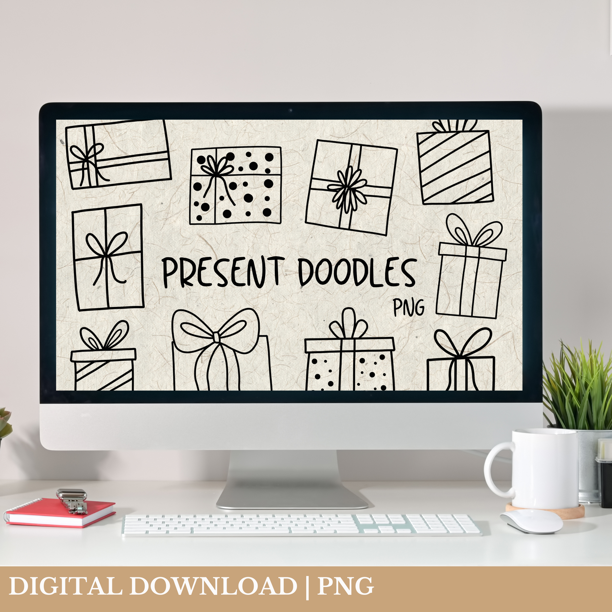 You will receive a ZIP file with 10 separate PNGs of the Christmas presents doodles. Once you purchase, you will receive an email and be able to download the zip file. I recommend doing this on a desktop/laptop, NOT a phone.