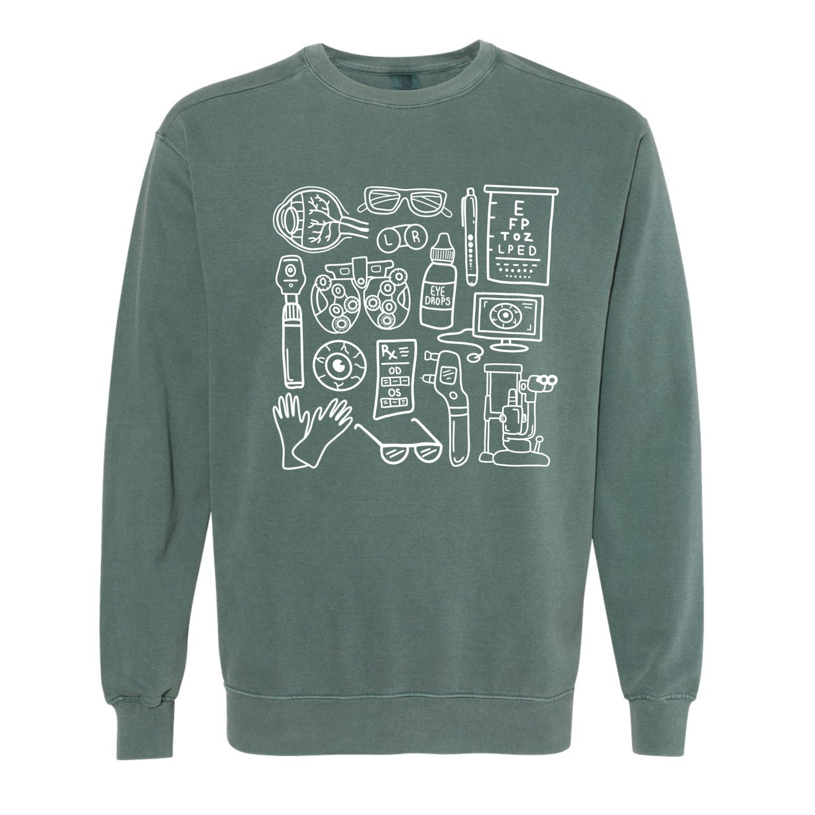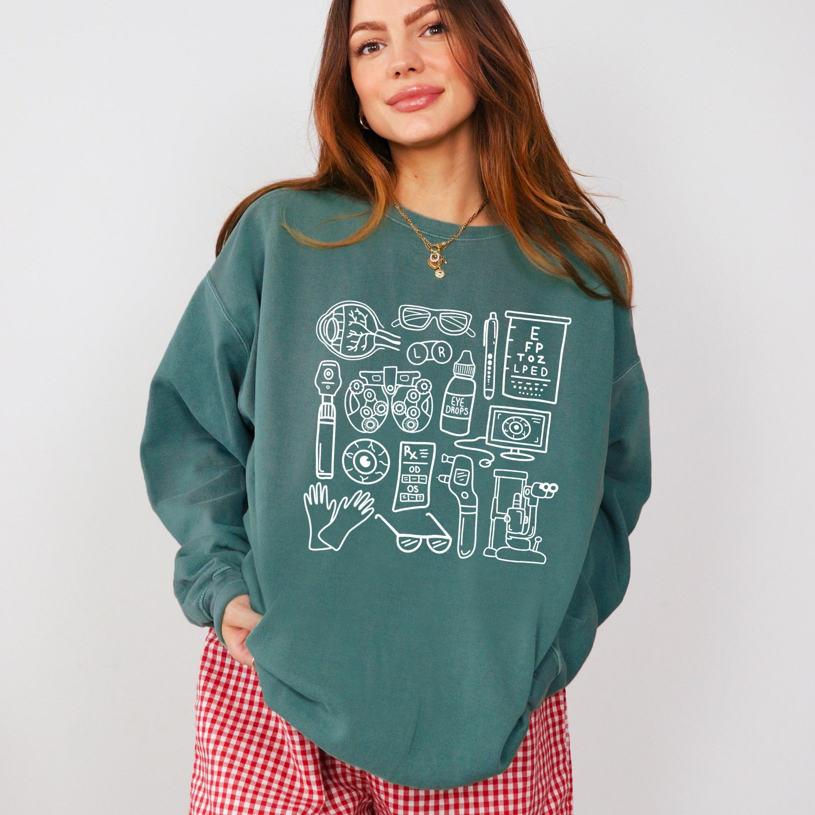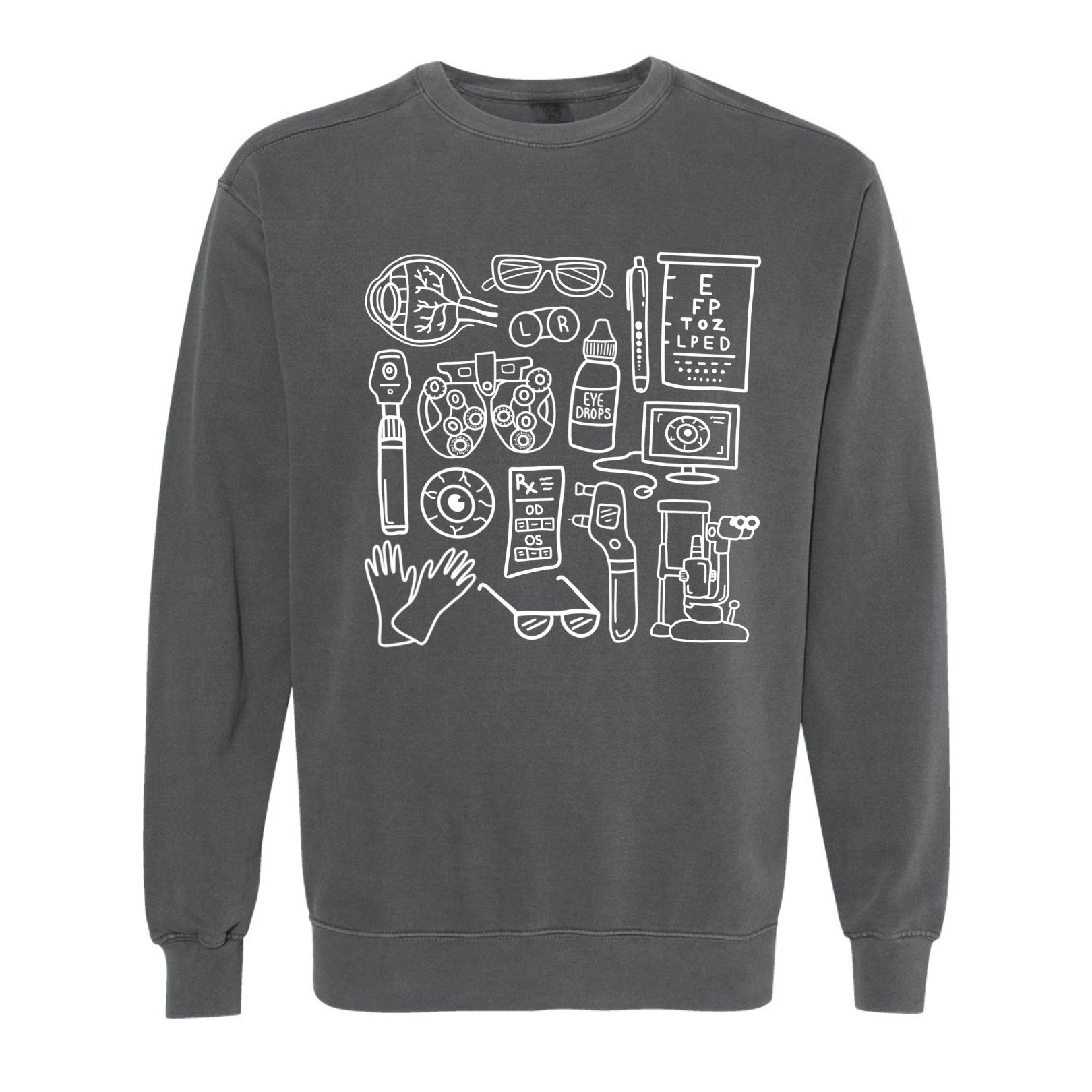 This cozy crewneck features our hand-drawn Ophthalmology Doodles design on the front, making it perfect for nurses, doctors, technicians, and other healthcare professionals working in the ophthalmology field!