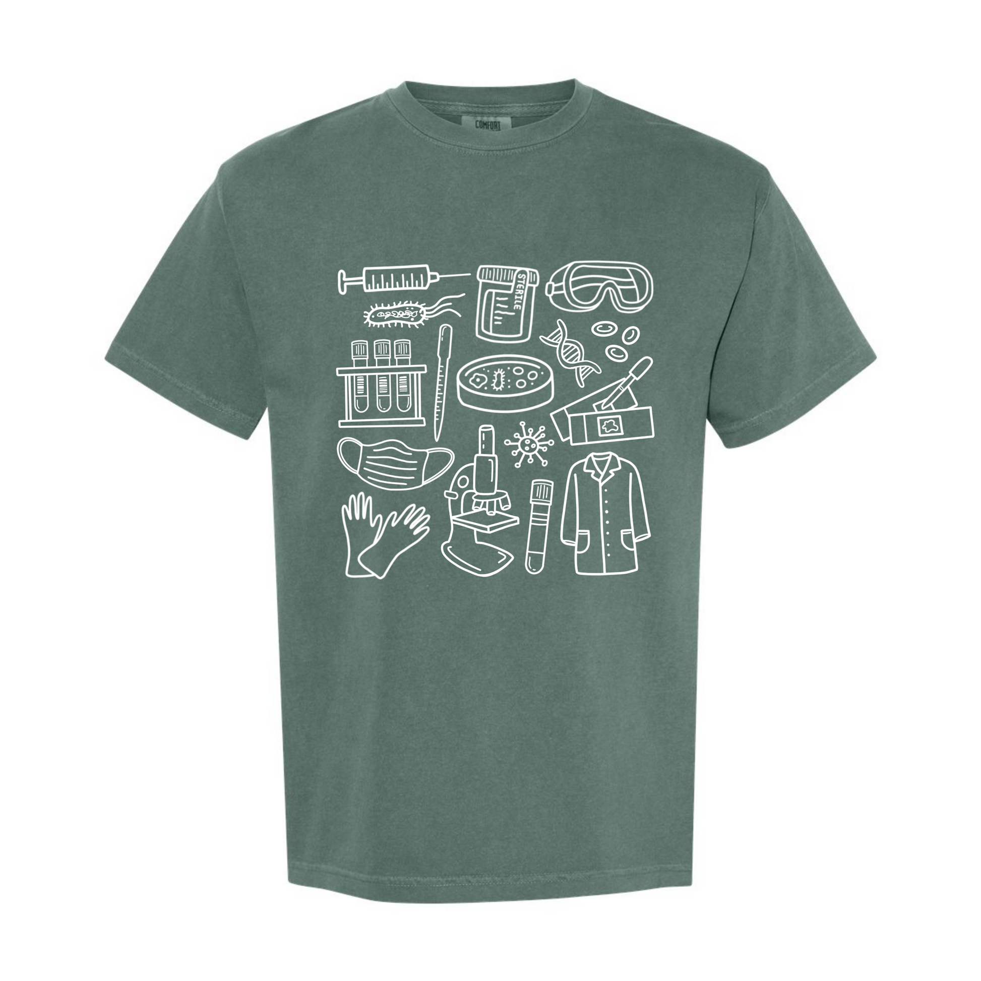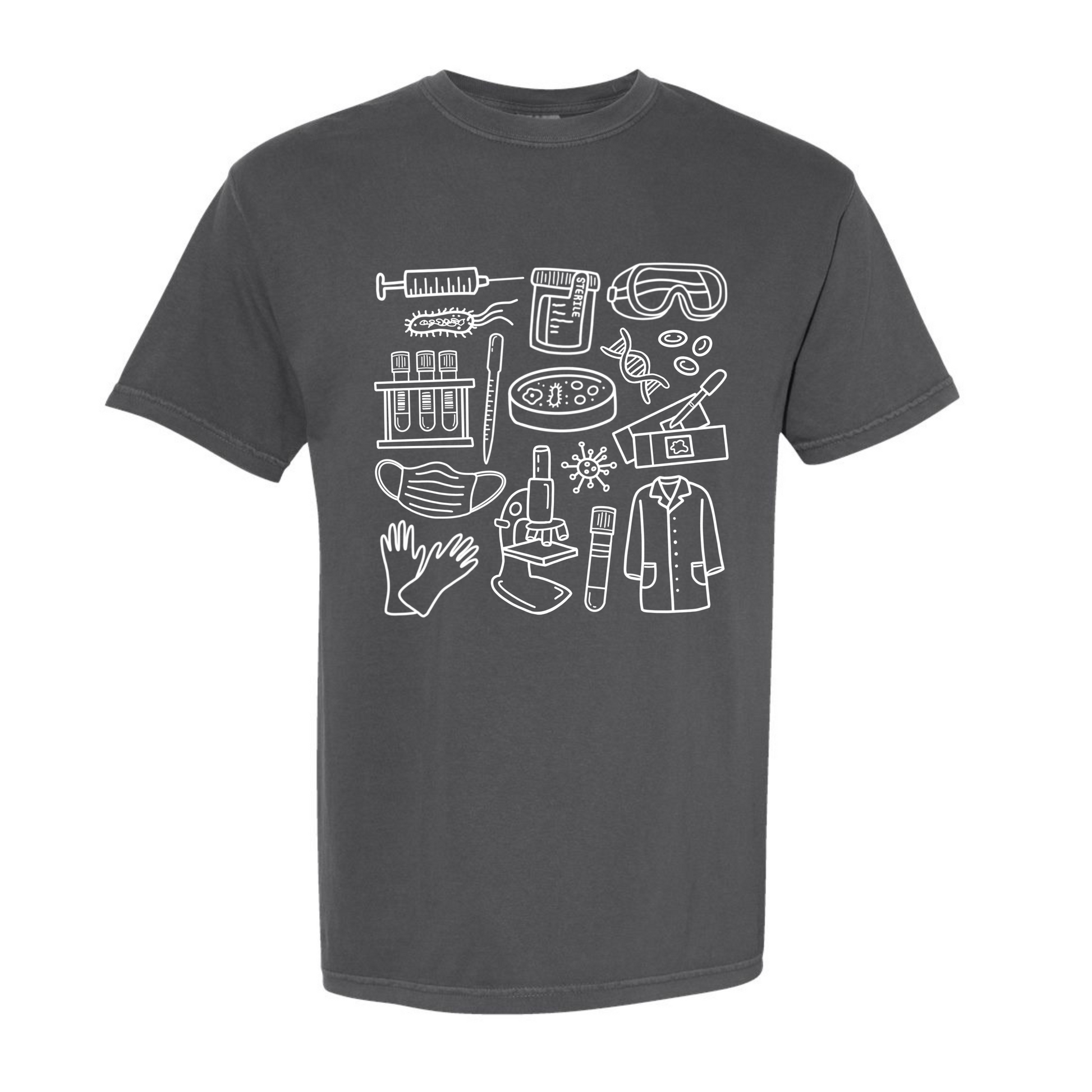 This t-shirt features our hand-drawn lab design on the front, making it perfect for all medical lab technicians, or other healthcare professionals!
