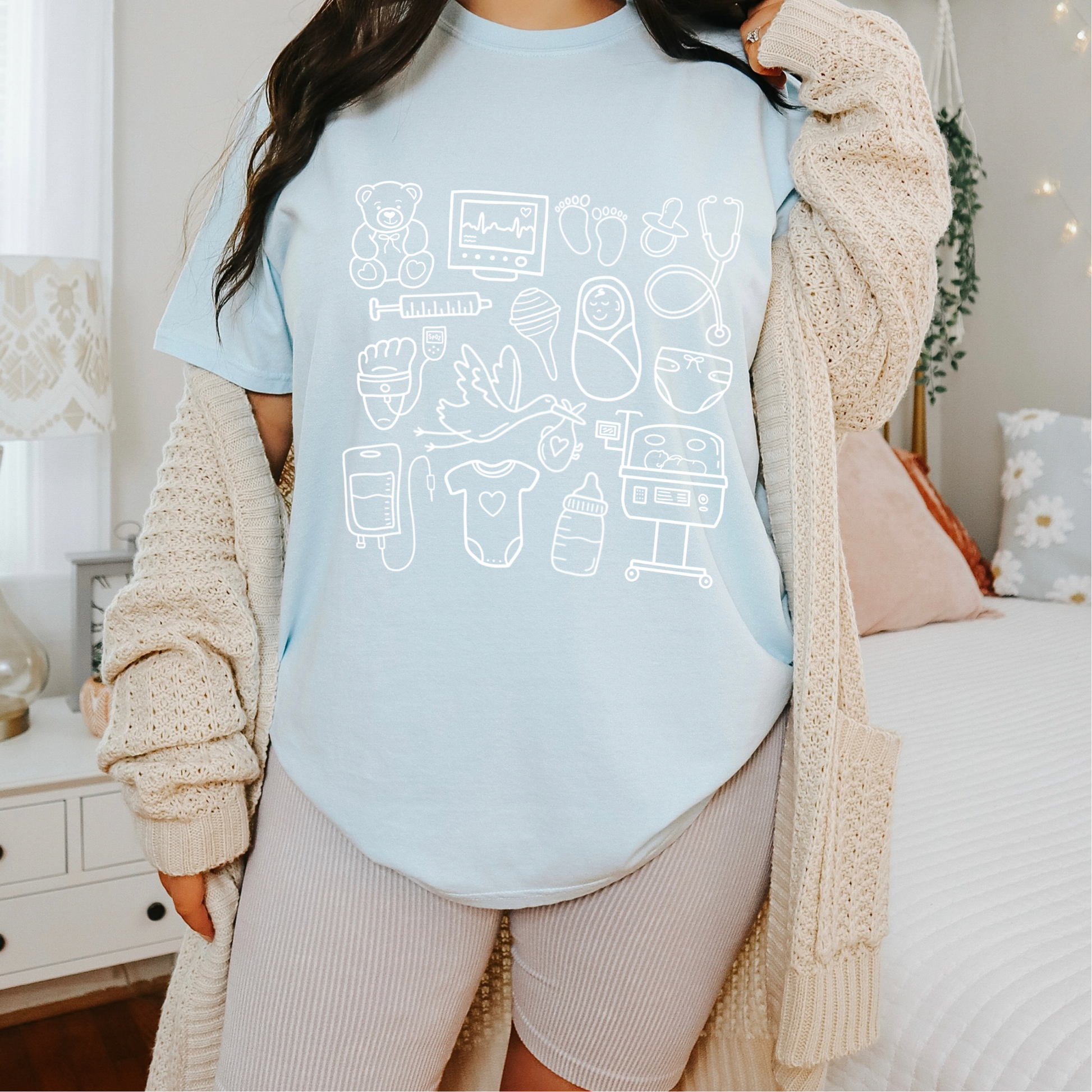 This t-shirt features our hand-drawn NICU design on the front, making it perfect for all NICU nurses, medical assistants, physicians or other healthcare professionals!