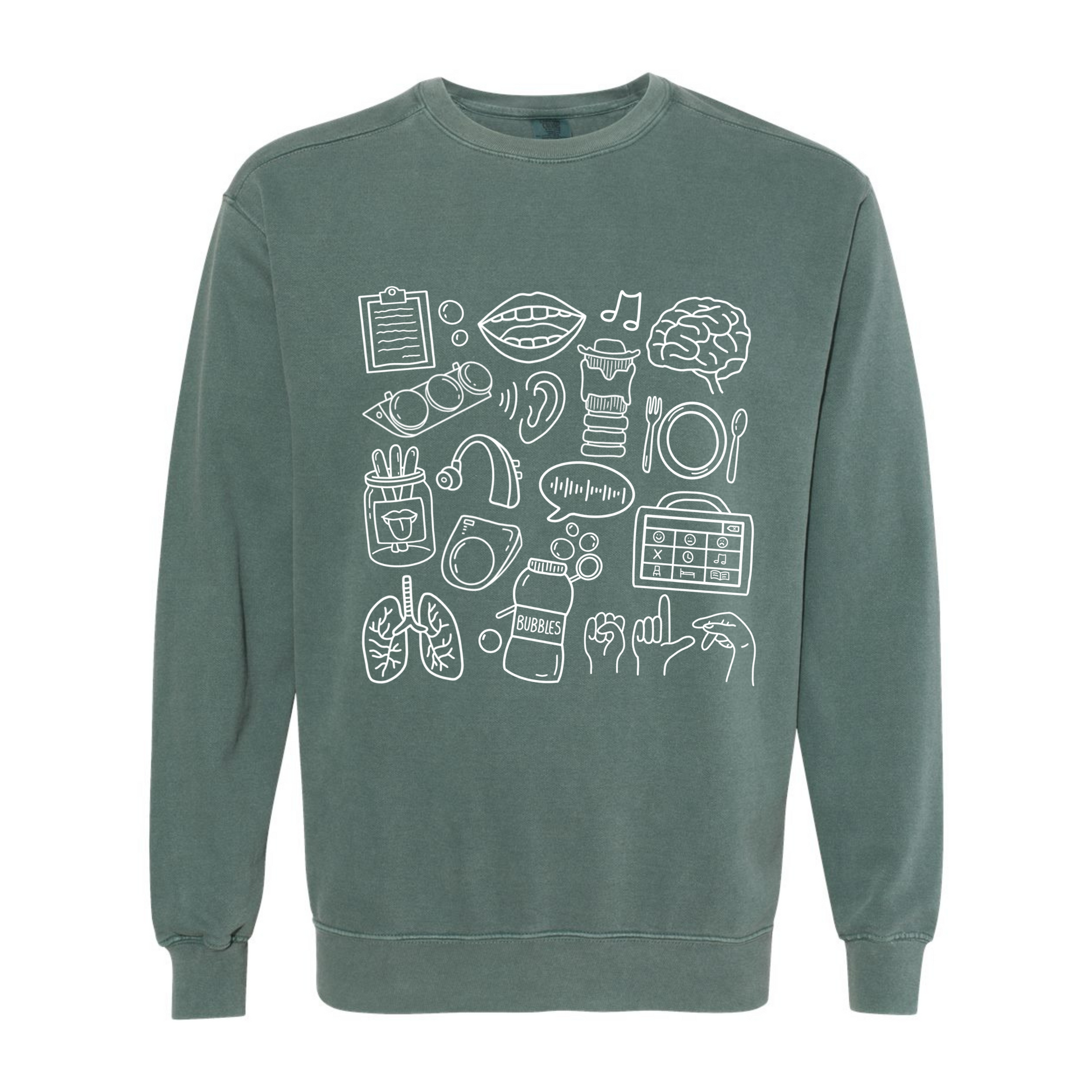 This crewneck features our hand-drawn speech language pathology design on the front. Perfect for. Perfect for SLPs, and speech therapists.