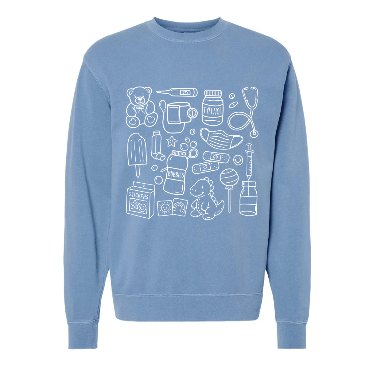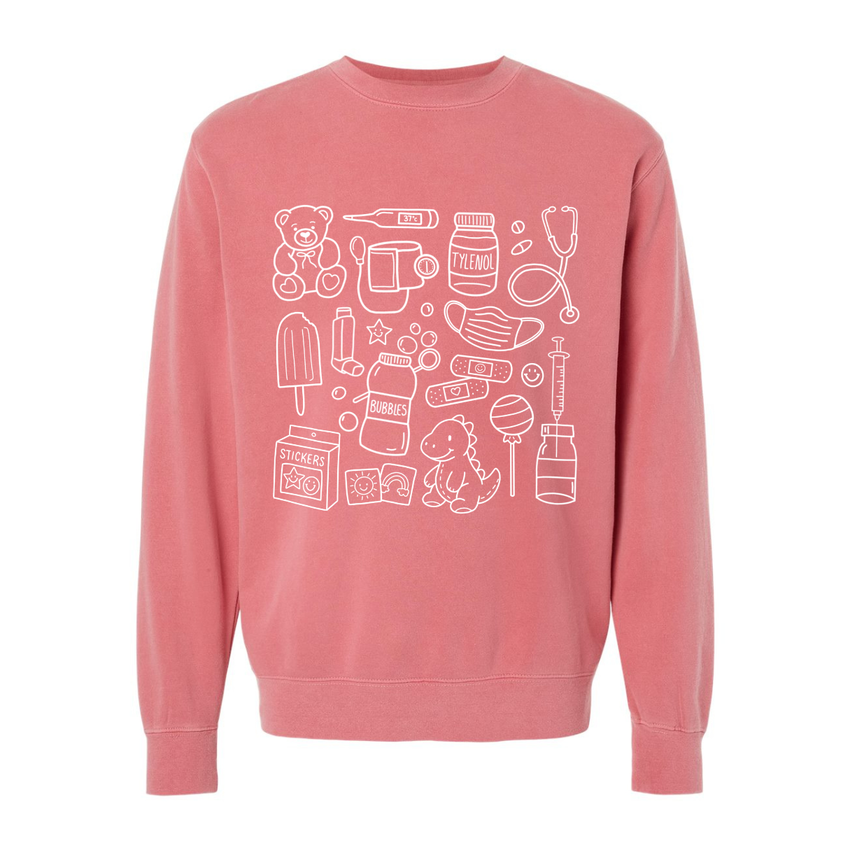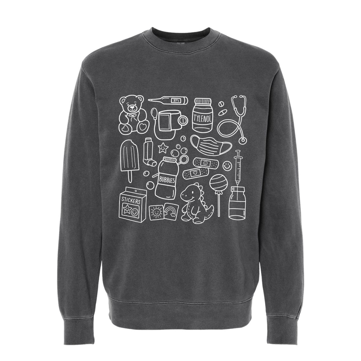 This cozy crewneck features our hand-drawn pediatrics design on the front, making it perfect for all peds nurses, pediatricians, or anyone who cared for little ones.