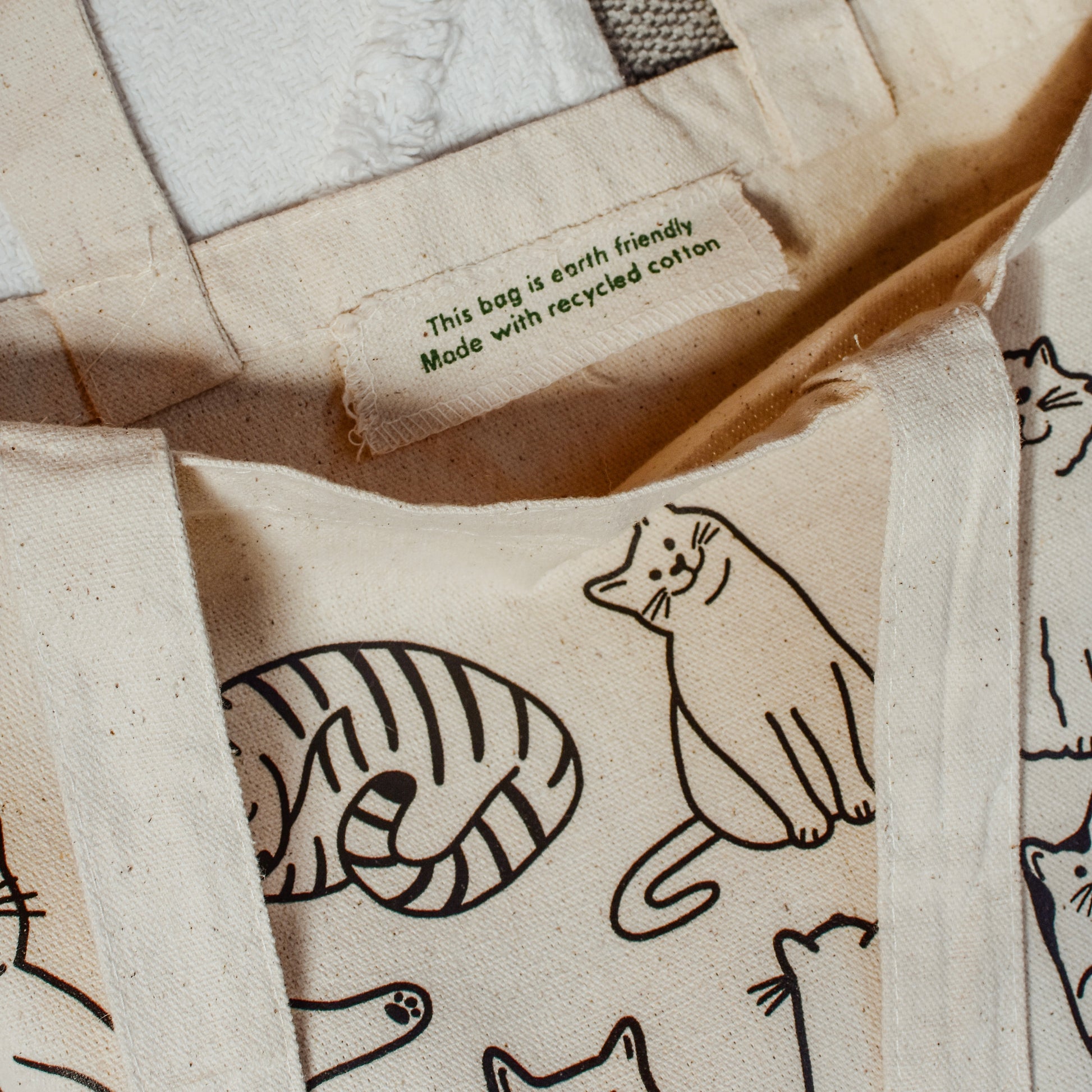 Say bye to plastics! These totes are the perfect environmentally friendly reusable bag. Great for post office runs, farmers markets, bookstores, school, shopping and more! With reinforced stress points, this bag can withstand the wear and tear of daily use. Crafted from recycled cotton, these totes are sustainable, functional, and adorable!