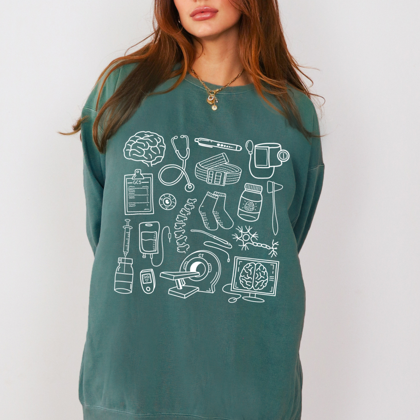This crewneck features our hand-drawn neurology design on the front. Perfect for neuro nurses, neurologists, or anyone working in the neuroscience field!