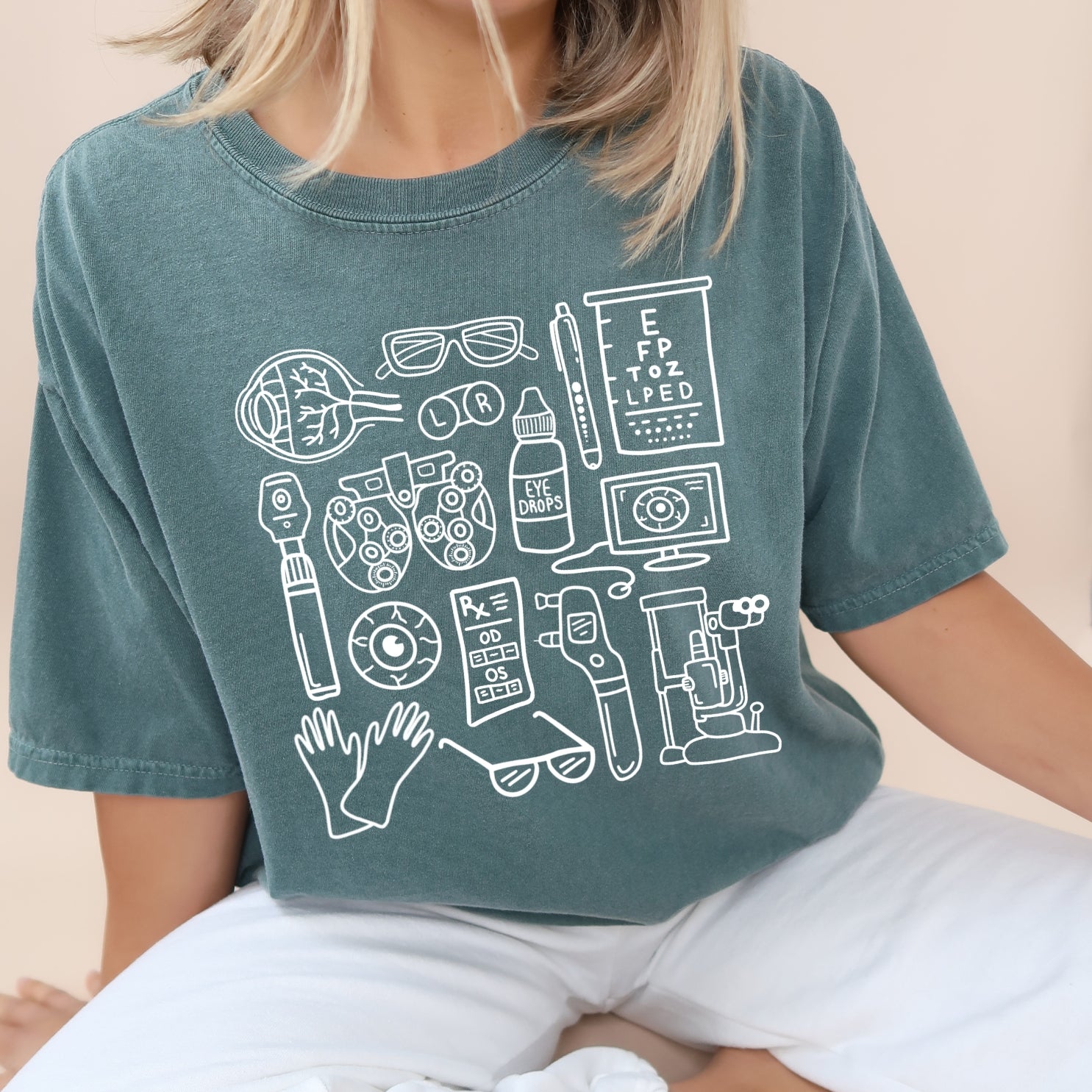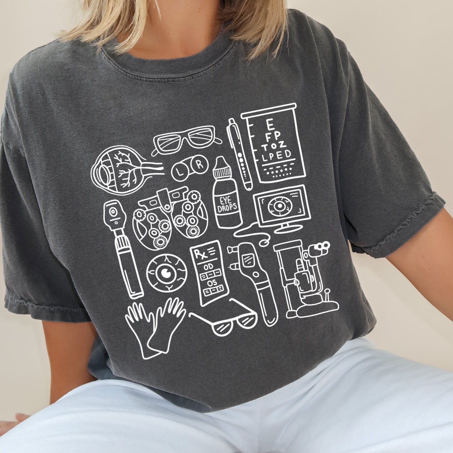 This t-shirt features our hand-drawn Ophthalmology Doodles design on the front, making it perfect for nurses, doctors, technicians, and other healthcare professionals working in the ophthalmology field!