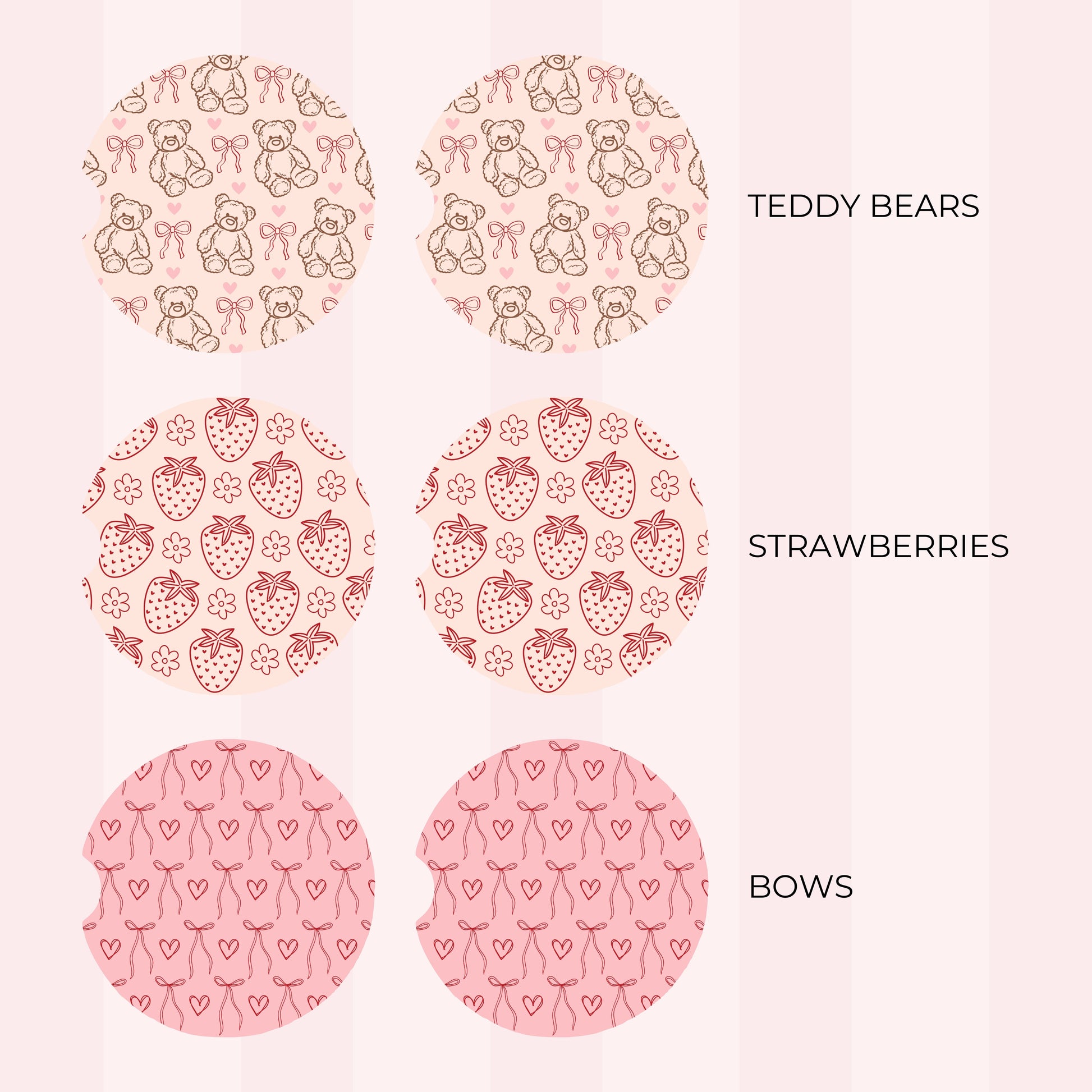 These adorable car coasters are meant to protect against spills and condensation helping keep your car extra clean! Each coaster is 2.75 inches in diameter and designed to fit in most cup holders. Please see washing instructions below.