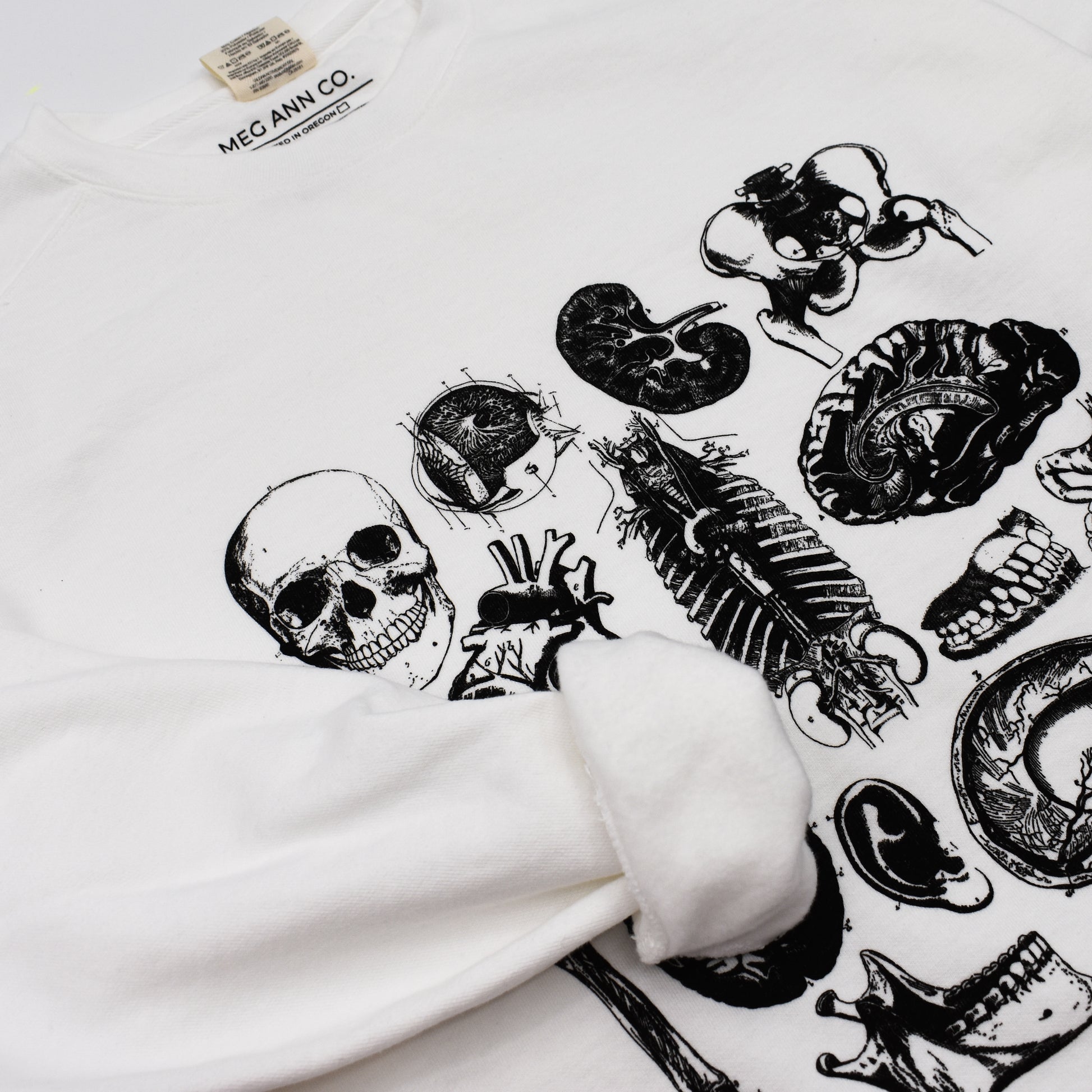 This White colored crewneck features our Vintage Anatomy design on the front. Perfect for all healthcare professionals and anatomy lovers!